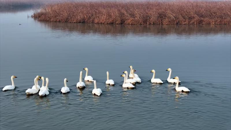 作为国家二级保护动物,小天鹅对栖息地的环境要求极高。近年来,湖北宜城万洋洲国家湿地公园管理处通过实施一系列生态保护措施,全面加强鸟类资源保护,使得万洋洲湿地生态环境得到了显著改善,野生鸟类数量不断增加。